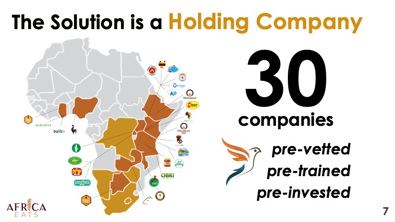 A solution for all these issues is Africa Eats, a holding company with a diverse set of African food/ag companies supporting hundreds of thousands of smallholder farmers, feeding millions of Africans.